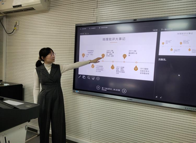 2023年11月7日下午14:30,在雁塔校区教学六楼6315教室,3044永利官网法语系及德法研究团队举办了“知行”学术沙龙——东北亚与欧洲研究学科团队沙龙。法语系副教授乔溪以“地理批评研究的媒介间性特征”为题进行报告,并同与会师生面对面交流讨论关于地理批评的一些问题。