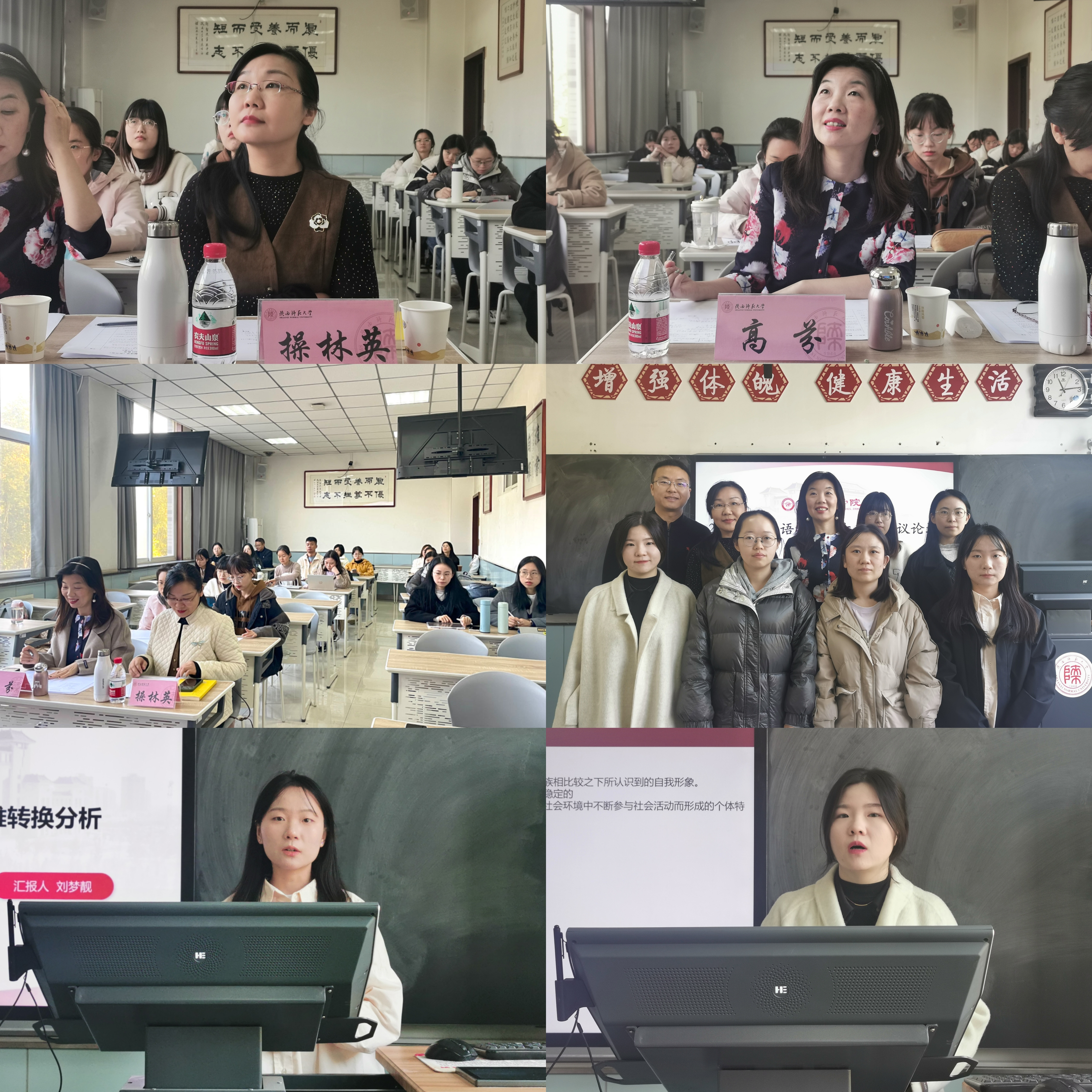 十二名同学分别从不同方面进行了论文汇报展示。本科生吉妍以“中日日语主流媒体关于福岛核污水排海事件报道的生态语言分析——以‘人民网日语版’与《朝日新闻》为例”为题作了汇报。硕士生王荣熙、武学敏、闫雪菲、刘雪莹、赵鑫月、智佳宁、朱骊安、薛静和张晓钰分别以“KWL 策略下初中英语阅读跨学科实践探究——以‘Singapore—A Place You Will Never Forget’为例” “宁夏海原方言'跟'的多功能用法及语法化路径”“构式语法视角下汉语词群现象研” “句法复杂度对议论文写作质量的影响”“高中英语读后续写中错误分析的调查研究”“ 初中英语写作中的母语正迁移现象研究”“情绪词加工的心境效应研究:综述与展望”“国内外关于二语词汇附带习得对比分析研究”“国际二语语音习得文献的知识可视化综述”为题进行汇报。博士生刘延玫和赵小庆以“社会语言学视角下吴起方言变异研究”“‘语言哲学’:‘N+N’的歧义性之句法演变”为题分别进行了精彩的论文汇报展示。 两位评委老师认真聆听,对每位同学给予了肯定,并就论文的选题、结构等方面提出了建议。