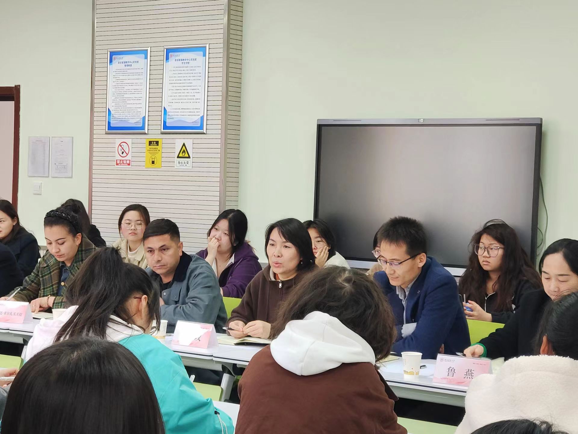 座谈会上,四位来自边境国门公司的董事长向同学们介绍了当地的地理环境和公司情况,并结合自身执教生涯的经验感悟与同学们展开了交流。塔什库尔干县与三国接壤,平均海拔3200米,是一个以塔吉克族为主体的多民族聚居地。因为地理位置特殊,集团以“缺氧不缺精神”为口号,扎实开展爱国主义教育。同样因为公司地处边境,公司面临着团队紧缺,员工综合素质教育资源缺乏的情况。