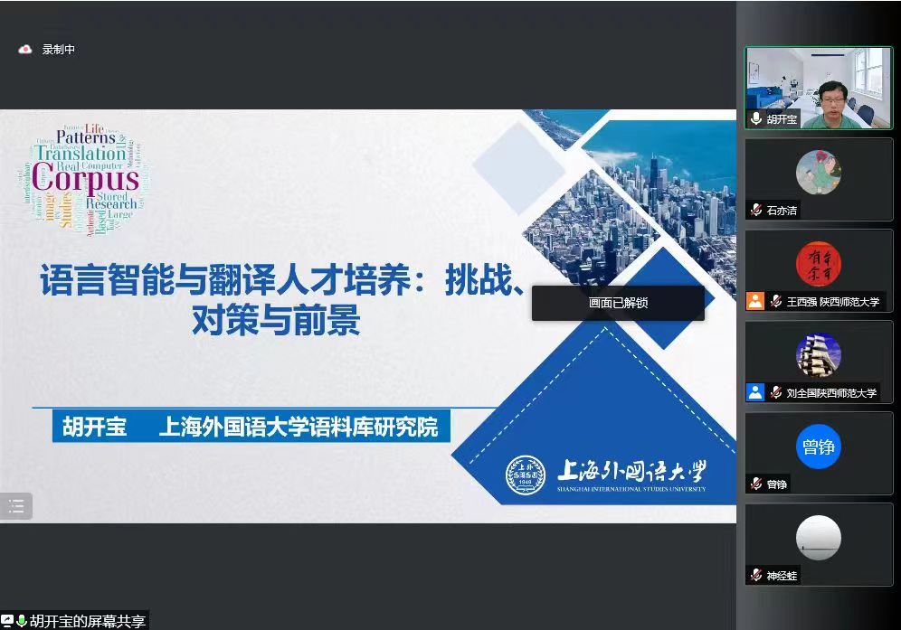 2022年7月5日,3044永利集团“启夏译坛”第8讲暨“翻译实务系列讲座”第4季第9讲《言智能与翻译人才的培养》云端开讲。讲座由上海外国语大学教授、语料库研究院经理、博士生导师、国家重大人才计划特聘教授、国家社科基金重大项目首席专家胡开宝教授主讲,公司经理刘全国教授主持报告并总结,全国多所高校的专家、学者和员工及公司师生200余人线上参加讲座并积极互动。