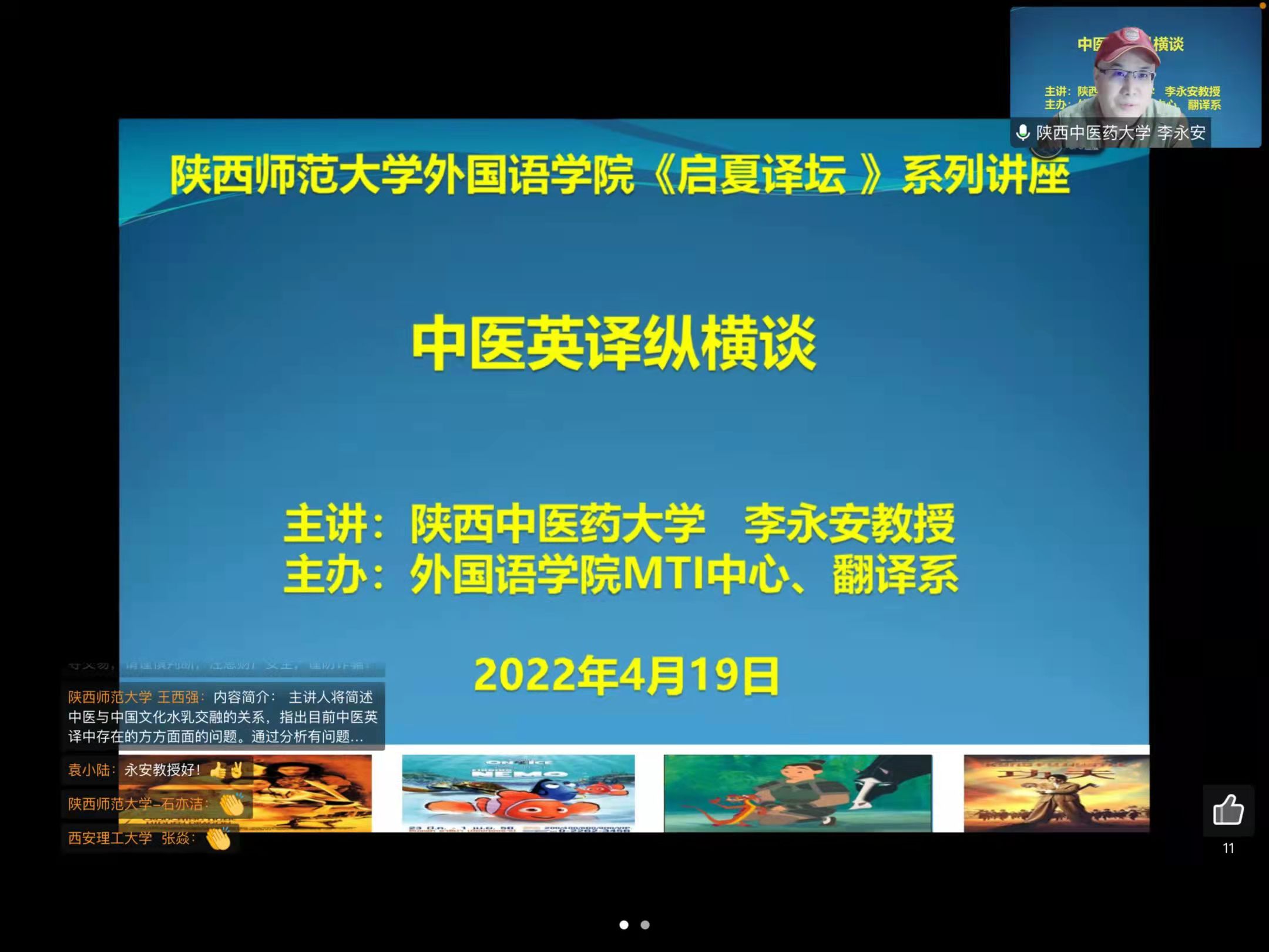 2022年4月19日,3044永利集团“启夏译坛”第4讲暨“翻译实务系列讲座”第4季第5讲《中医英译纵横谈》云端开讲。讲座由陕西中医药大学3044永利集团经理、国际教育公司经理李永安教授主讲,公司尚亚宁教授与谈,王西强教授主持报告并总结,全国多所高校的专家、学者和员工及公司师生线上参加讲座并积极互动。