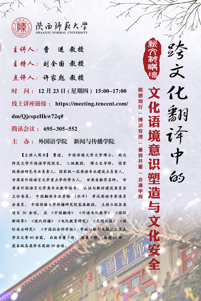 海报:《跨文化翻译中的文化语境意识塑造与文化安全》