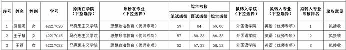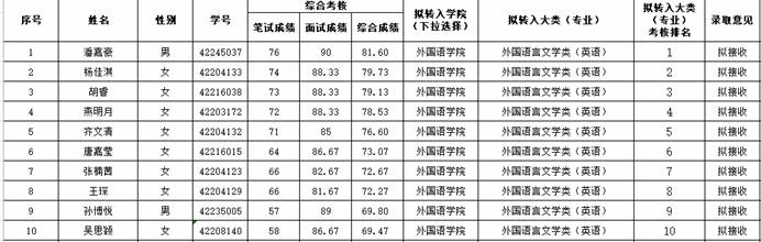 根据《3044永利官网2022级本科专业分流工作方案》(师教〔2023〕10号)、《关于做好2022级本科生专业分流工作的通知》,通过自愿报名、资格审核、综合考核,有8名员工通过英语专业国家公费师范生专业分流考核、3名员工通过英语专业优师计划师范生专业分流考核、10名员工通过外语类专业分流考核,名单公示如下(按照成绩从高到低排列):